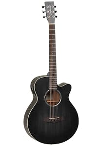 Tanglewoods Winterleaf Series Acoustic guitars with Solid Cedar Tops and mahogany B&S. Fitted with Bband EQ. In Antique Violin Burst.