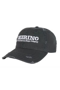 Deering baseball cap. A quality baseball cap from Deering with embroidered Deering Banjos logo, in the popular 'white logo on distressed grey cap'. One size, fits all with Adjustable strap at the back.