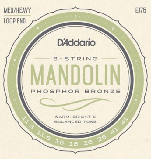 EJ75, D'Addario's heaviest gauge mandolin set, was designed in cooperation with Ronnie McCoury, who's hard driving, percussive style requires increased tension for maximum volume. Loopend construction for universal fit.