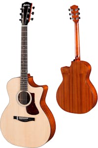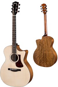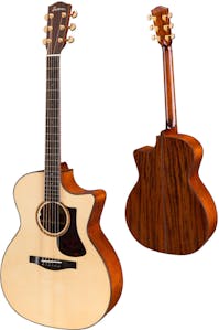 What a guitar from Eastman! This AC822CE Cutaway Electro Acoustic features a solid european spruce top, solid rosewood back and sides with a center strip at the back, an 1.5 inch wide sound port, stunning pearl vines fingerboard inlays, an ebony fingerboard and an LR Baggs Anthem pickup. It's also supplied in an Eastman deluxe hard case.
