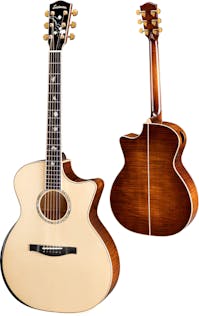 Absolutely stunning guitar! Eastman AC622CE Cutaway Electro with sound port. Features a solid european spruce top, highly flamed maple back and sides, 1.5 inch wide sound port, abalone maple leaf fingerboard inlays, ebony fingerboard and an LR Baggs element pickup. Supplied in a deluxe hard case.