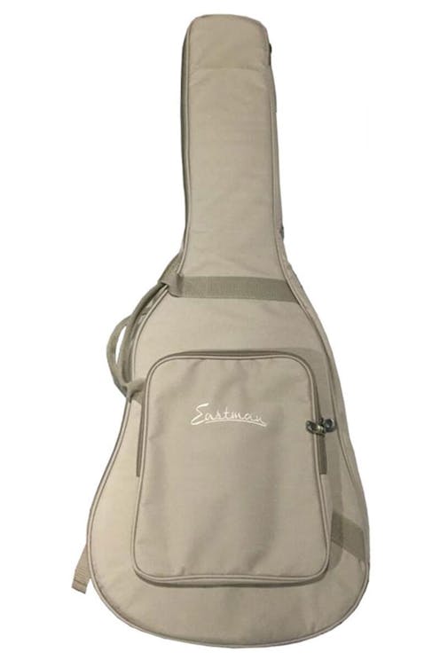 Excellent quality dreadnought sized gig bag with the Eastman embroidered logo on the front pocket. Features internal neck brace padded block with fixing strap, double zippers, double reinforced padded rucksack style straps. Beige only. Will fit Dreadnought and smaller