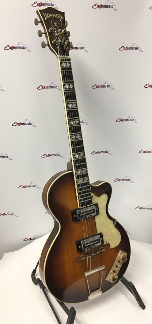The Club series of guitars are probably those most considered to be the Hofners that helped the early British rock heroes in their early careers. Photographs abound of John Lennon, Paul McCartney, Dave Gilmour, Justin Haywood, etc. clutching a Hofner Club in their youth. The Club was considered by most young guitarists in the late 50s to be the "business", until they were weaned away by such modern developments as the Futurama III or, if really lucky, an American guitar!