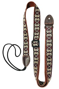 Hand crafted in Chicago, USA. A first quality woven mandolin strap for 'F' style, 'A' style and other mandolins and Ukuleles ...It is neat, lightweight and strong. It has soft brown leather ends. This unique strap is fully adjustable for length and has a strong nylon loop to be hung around the scroll of an 'F' style mandolin or around the headstock of other style mandolins. Strap measures 80 cm at its shortest and 130 cm at its longest.