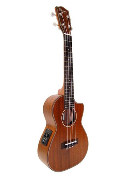 Quality all solid concert ukulele with cutaway, superb sweet mellow tone. Features a built in pre-amp, pickup assy and a built in tuner. Smooth satin finish.