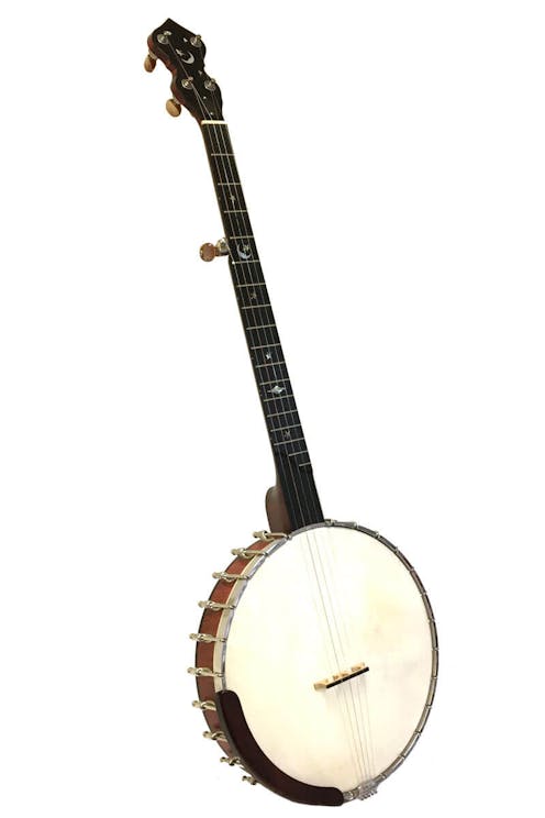 The fine build qualities of the Ome vintage series are reflected in the ‘Jubilee’ model which combines elegant simpliciity with classic design and construction at a modest price. It is designed by a master banjo builder, with over fifty years of experience, and is built from the finest ‘banjo materials’. The beautiful curly maple neck and ebony fingerboard inlaid with natural abalone inlays, is enhanced by Ome’s build quality and attention to fine detail.