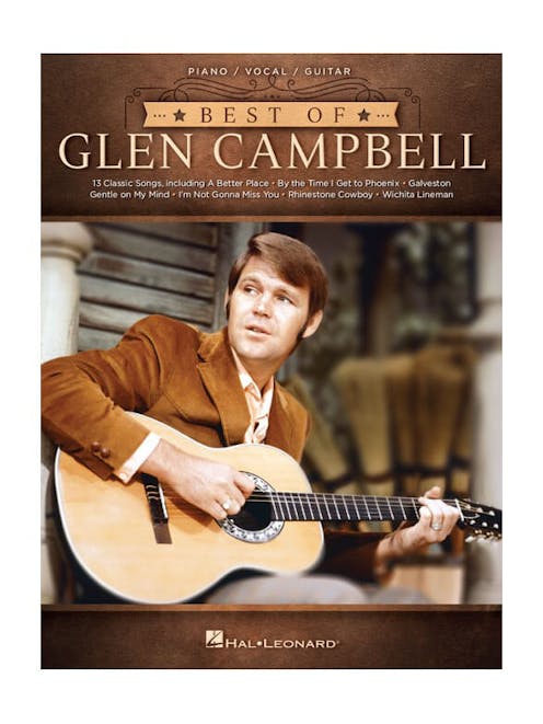 13 classic songs from this popular country guitarist, arranged for piano, voice and guitar. Includes A Better Place • By the Time I Get to Phoenix • Country Boy (You Got Your Feet in L.A.) • Galveston • Gentle on My Mind • I'm Not Gonna Miss You • It's Only Make Believe • Reason to Believe • Rhinestone Cowboy • Southern Nights • True Grit • Try a Little Kindness and Wichita Lineman.