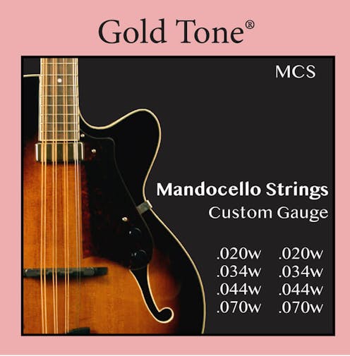 A set of Custom gauge ball ended Mandocello strings, designed for use with The Gold Tone Mandocello. Gauges are 2 x 070w, 2 x .044w, 2x .034w, 2 x .020w