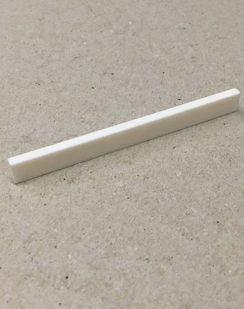 A natural bone Saddle blank for replacing the saddle on Guitar, Mandolin, Ukulele etc. Even, consistent color and high density for the best tone.